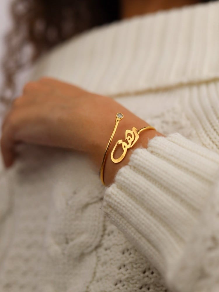 أرقي وأفخم اسوارة مع نحت الاسم أو أي عبارة بإتقان بأحدث التقنيات مع زركون أنيق متوفرة بطلاء ذهبي أو فضي أصلي يمكن تقديمها كهدية تصلح لجميع المناسبات وترضي جميع الأذواق