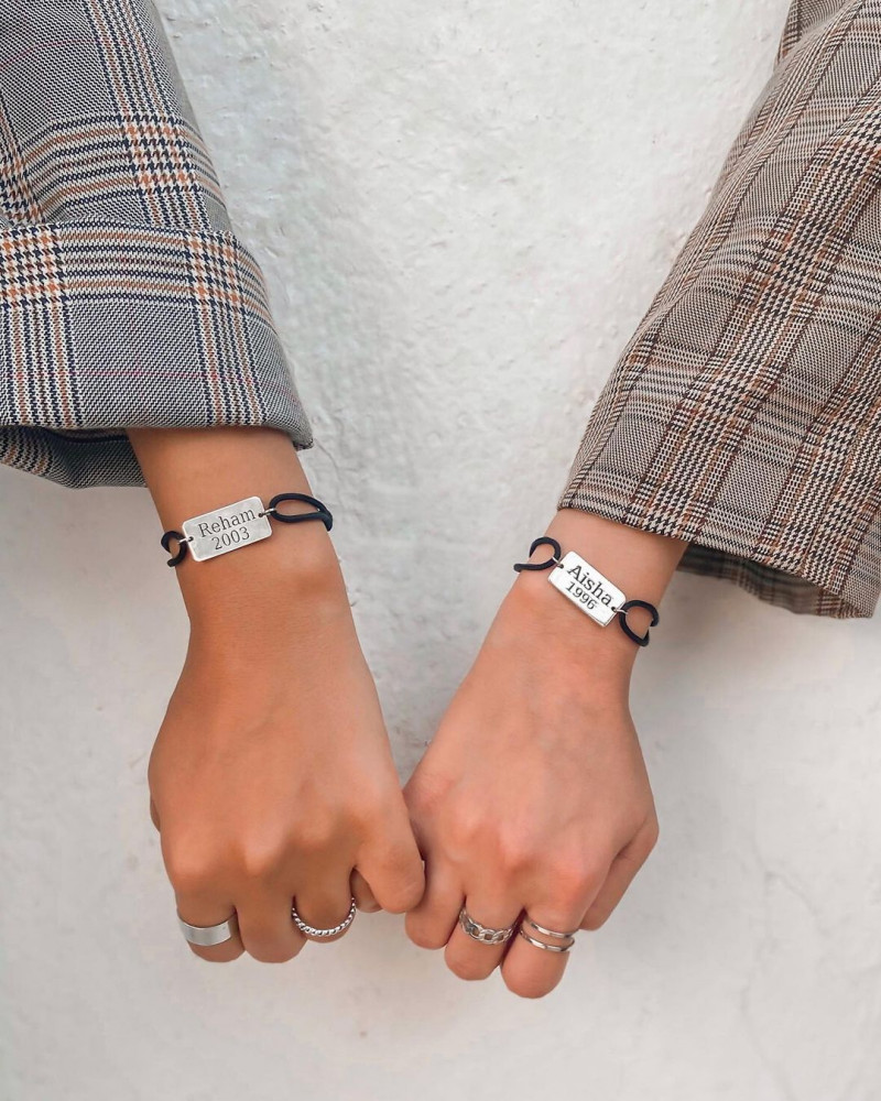 دللي نفسك وازدادي رقة وأنوقة مع اسوارة بجودة عالية بالاسم والتاريخ محفور بأحدث التقنيات حسب الطلب ومتوفرة بطلاء ذهب أو فضة أصلي وهي مرنة المقاس وتأتي مع علبة فخمة وكيس هدية