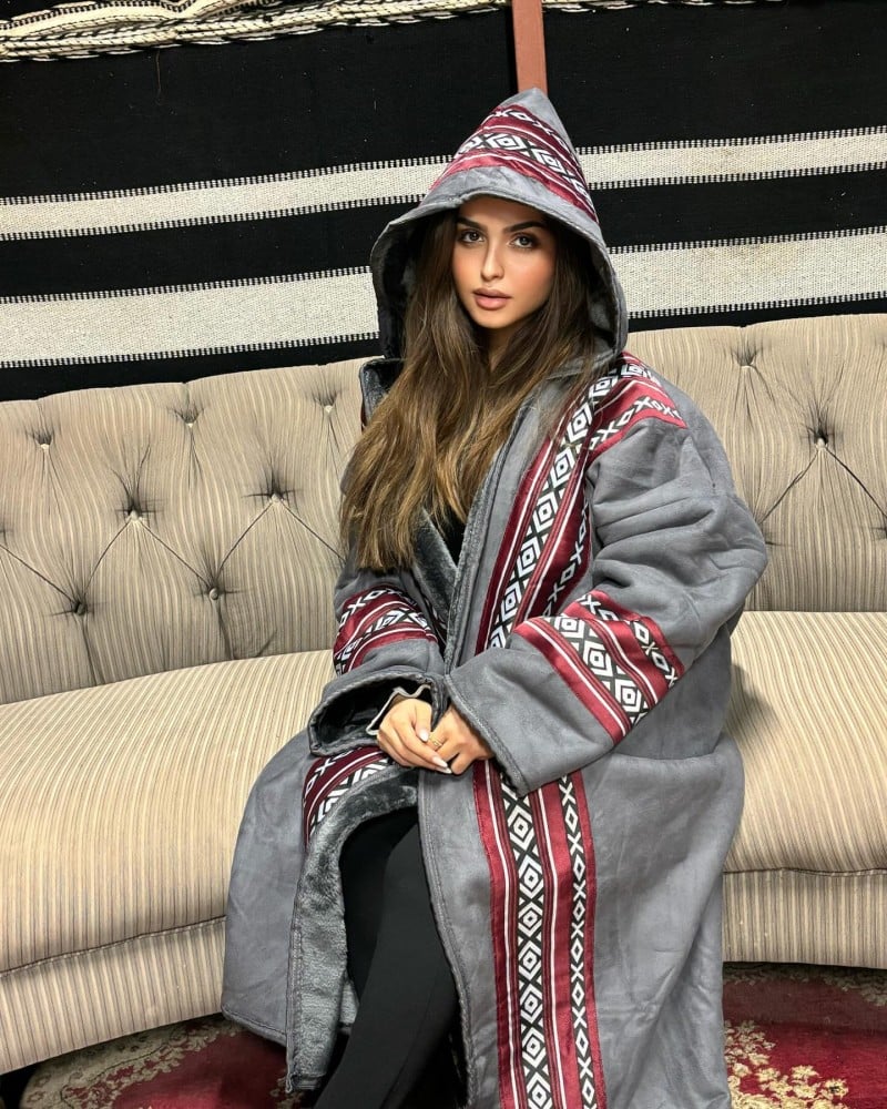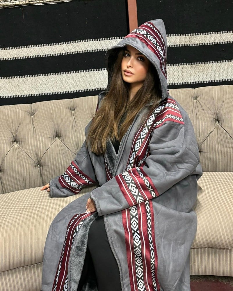 فروة مخملية سوداء بنقشة السدو البدوية المتألقة