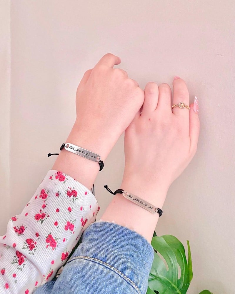 دللي نفسك وازدادي رقة وأنوقة مع اسوارة بجودة عالية بالاسم والتاريخ محفور بأحدث التقنيات حسب الطلب ومتوفرة بطلاء ذهب أو فضة أصلي وهي مرنة المقاس وتأتي مع علبة فخمة وكيس هدية