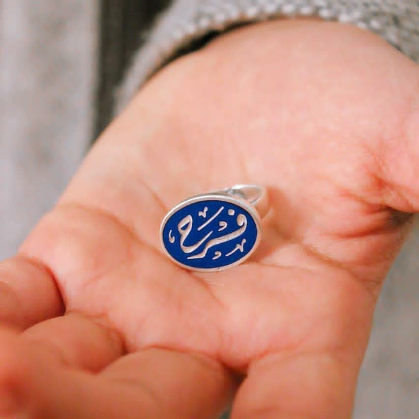 خاتم ملكي نسائي بالاسم حجر طبيعي من الفضة الإيطالية عيار 925. خاتم متفرد مع ضمان على ثبات لونه فضي أو ذهبي. خواتم نسائية مختلفة وهدايا نسائية رائعة لدينا.