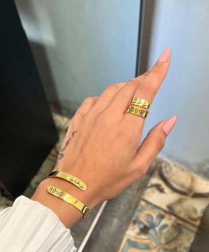 قمة الشياكة والفخامة اسوارة من متجر سارة بالحرف بخط عربي من النحاس غير قابل للكسر بطلاء ذهبي أو فضي لا يصدأ مع ضمان على اللون ويكمن جمال الاسوارة هذه في دقة تفاصيلها وتصميمها الكلاسيكي