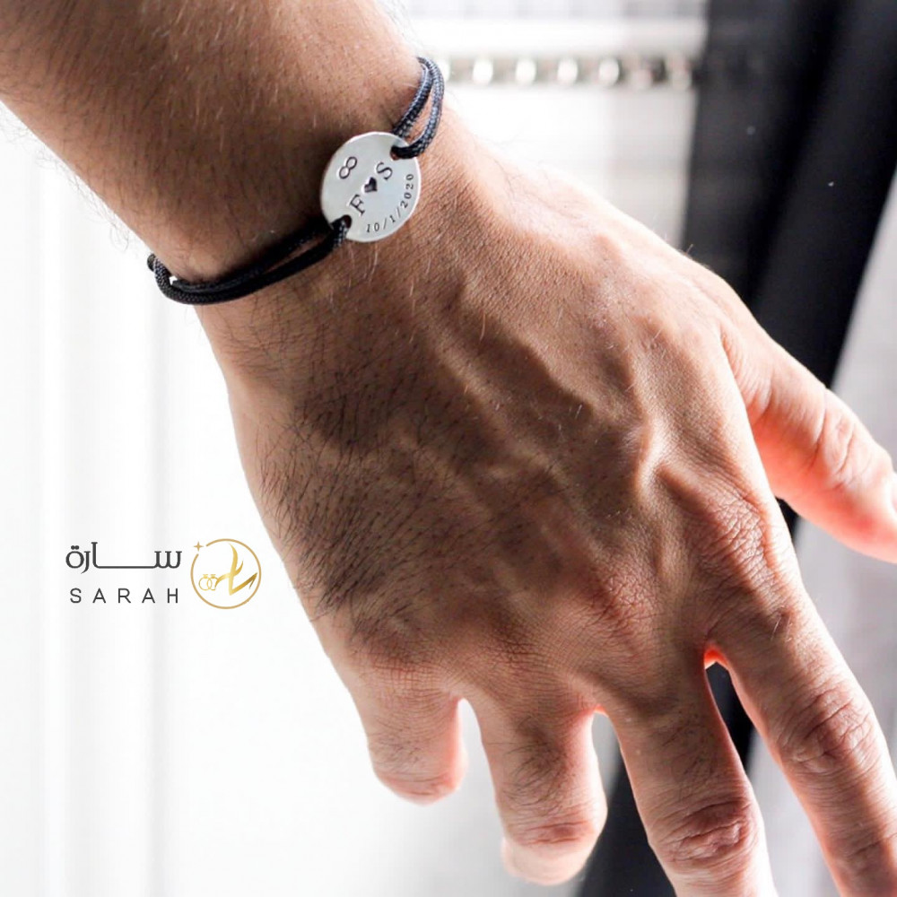 اختاري له أجمل هدية تلمس قلبه اسوارة رجالية فخمة من النحاس بطلاء فضي أصلي لا يصدأ وعبارة سأختارك دائما وأبدا أو أي عبارة أخرى حسب الطلب والخيط باللون الأسود الأنيق