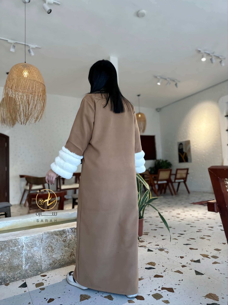 فروة شتوية جملي مفتوحة صممت بطريقة عصرية.