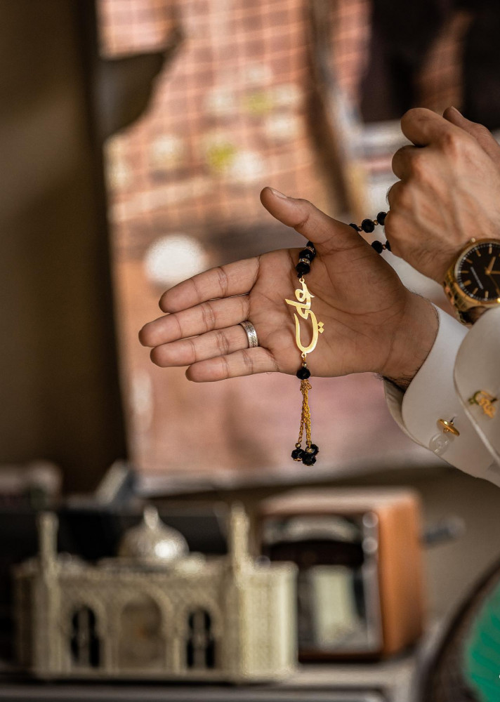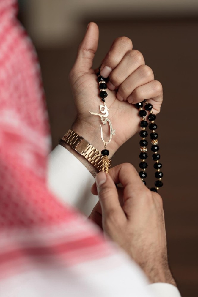 طقم سبحة وكبك بتصميم فخم بالاسم