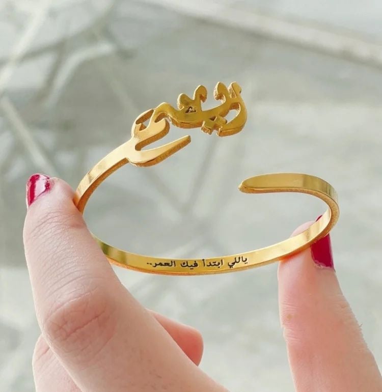 من سارة أجمل هدية مصنوعة بحب اسوارة بالاسم أو العبارة أو التاريخ بحفر ليزر أحدث التقنيات ومتوفرة بطلاء ذهبي أو فضي مع ضمان سنة على اللون ومقاس مرن